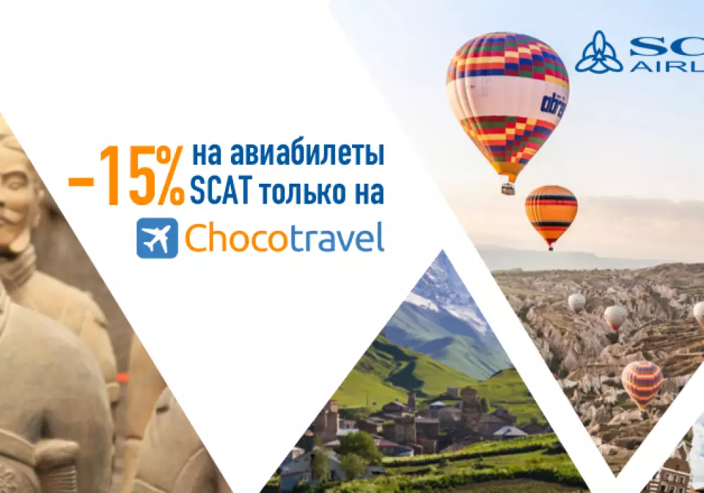 Вот, например, авиакомпания SCAT Airlines только на Chocotravel распродает авиабилеты со скидкой до 15 процентов!