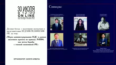 Пресс-конференция с налоговыми экспертами и представителями КГД МФ РК и КФМ МФ РК на тему: "Меры администрирования НДС в рамках пилотного проекта по приказу № 1084 как метод борьбы с теневой экономикой РК".