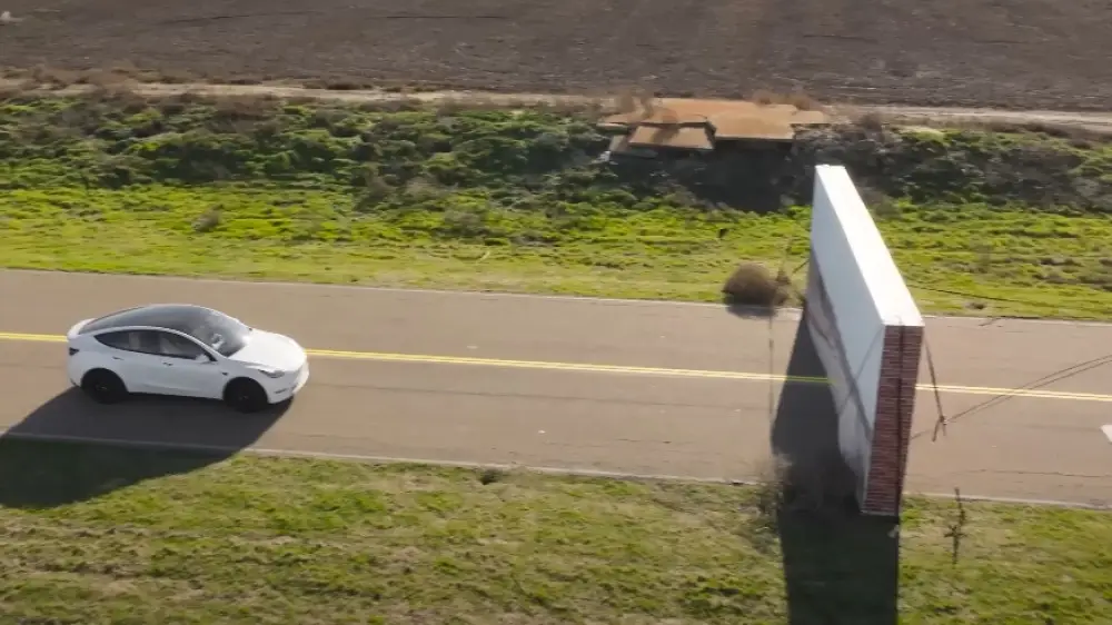 Этот тест напоминал сцену из мультфильмов про Хитрого Койота: на стене нарисовали тоннель. Lidar, как и положено, принял стену за препятствие и остановился. "Тесла" же… просто проехала сквозь "проход", словно в мультфильме.