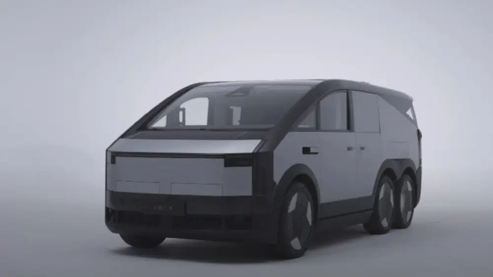 Наземный модуль, получивший прозвище "материнский корабль", представляет собой электромобиль с минималистичным дизайном, который напоминает смесь Tesla Cybertruck и Volkswagen ID.Buzz. Этот киберфургон, рассчитанный на пять пассажиров, имеет шесть колес и полноприводную систему. Кроме того, он оснащен силовой установкой на базе карбида кремния с напряжением 800 В, что обеспечивает запас хода более 1000 километров на одном заряде. Наземный модуль также может служить мобильной электростанцией.