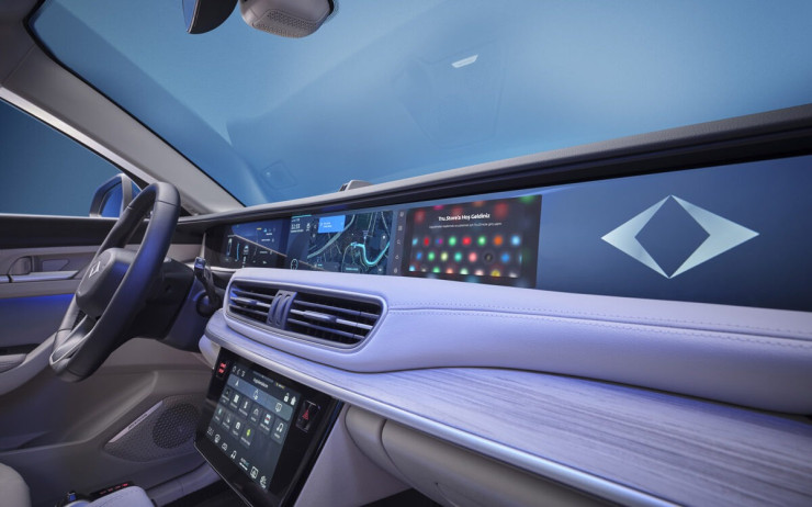 "Тогг" установил в кабине экран, который занимает всю ширину приборной панели и обеспечивает множество интересных функций, начиная с камеры, которая заменяет ключ входа на систему распознавания лиц, а также может делать селфи, заканчивая радио с искусственным интеллектом.