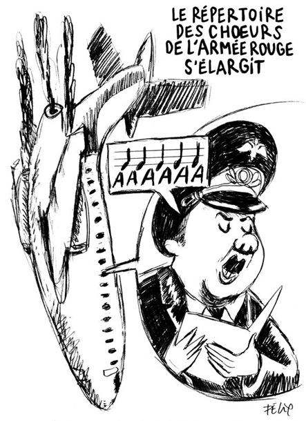 Позже Сharlie Hebdo опубликовал еще одну карикатуру, высмеивающую трагедию над Черным морем. Последняя изображает артистов ансамбля имени Александрова, которые, как гласит подпись под картинкой, "покоряют новую (подводную) публику".