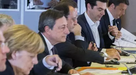 ЕС и Афины подготовили компромиссный проект по греческому долгу Ангела Меркель, Жан-Клод Юнкер, Марио Драги, Франсуа Олланд, Мариано Рахой и Алексис Ципрас. Фото © REUTERS