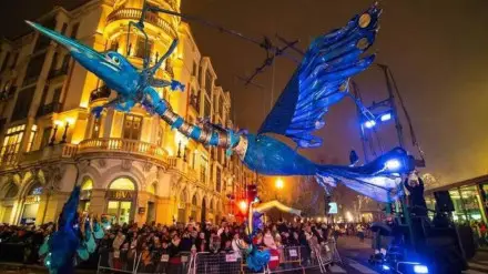 На парад пришли сотни людей, чтобы насладиться красочным шествием, главным украшением которого была гигантская фигура парящей синей птицы. Однако металлическая конструкция, поддерживавшая инсталляцию, внезапно не выдержала и обрушилась прямо на людей.