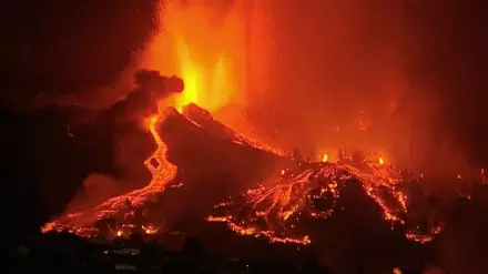 Изначально из вулкана в цепи вулканов Кумбре-Вьеха вырывались большие клубы дыма и пепла, но вскоре по его склонам пошла лава, которая уже добралась до дорог и жилых зданий.