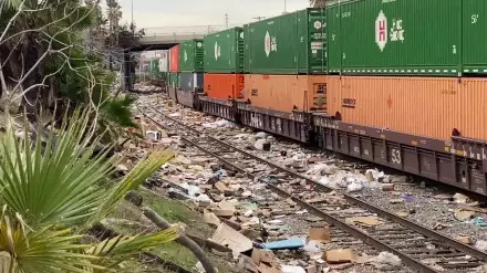 На железнодорожных путях американского города Лос-Анджелес были замечены тысячи разорванных упаковок, оставленных ворами, которые начали грабить грузовые контейнеры, передает Tengrinews.kz со ссылкой на Daily Mail.