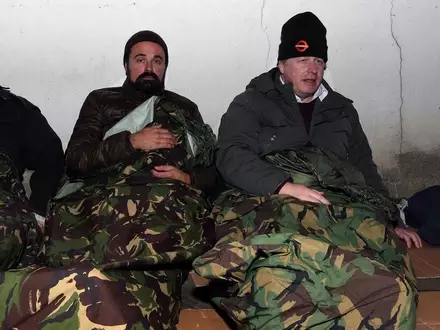Мэр Лондона Борис Джонсон и владелец газеты The Independent Евгений Лебедев провели ночь на улице, чтобы поддержать бездомных ветеранов.