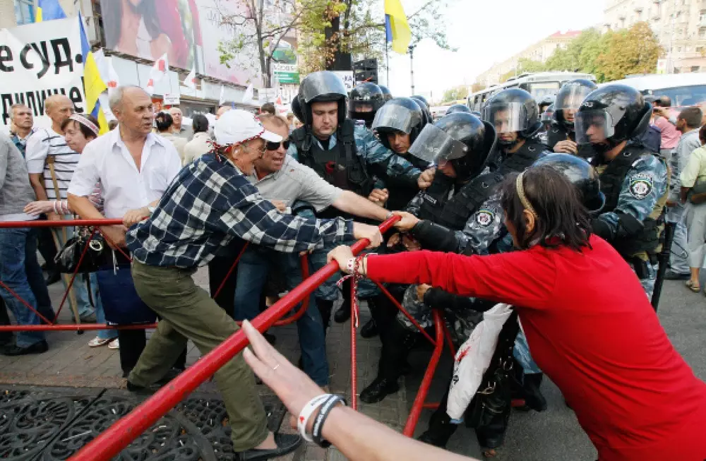 Сотрудники милиции взяли в живое кольцо палаточный городок оппозиции в центре Киева, сообщает РИА Новости. Силы правопорядка с помощью металлических барьеров полностью загородили все въезды в Печерский районный суд, где проходят слушания по делу экс-премьера Украины Юлии Тимошенко. По заявлению оппозиционных депутатов, милиция пошла на такие меры с целью отделения манифестантов от проезжей части, по которой 7 августа под конвоем доставят в суд Тимошенко. 5 августа экс-премьера с трудом удалось вывезти из суда, чему пытались воспрепятствовать ее сторонники. Кроме того, перед зданием суда находятся несколько десятков противников Тимошенко, которые требуют уступить им часть места. Вместе с тем, окружной административный суд Киева 7 августа удовлетворил иск киевской мэрии и запретил массовые акции возле Печерского суда, принявшего решение об аресте Тимошенко. Согласно решению суда, митинги на Крещатике запрещено проводить с 7 до 31 августа, в то время как запрет на пикетирование здания СИЗО объявлен бессрочным.