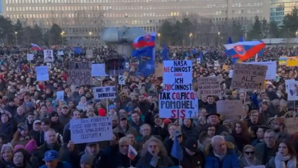 Свыше 60 тысяч человек вышли в Братиславе на акцию протеста против правительства Роберта Фицо, передает Tengrinews.kz со ссылкой на Aktuality.