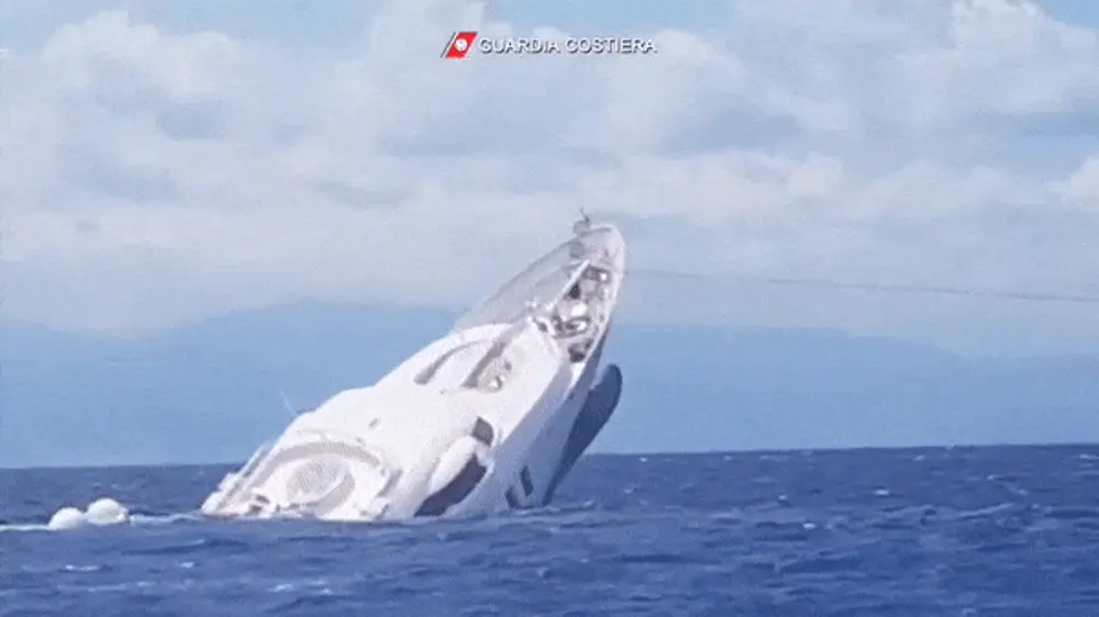 40-метровая яхта "Сага", построенная в Монако еще в 2007 году, затонула примерно в 15 километрах от пристани Катандзаро в Италии. На записи запечатлен момент, когда вода начинает заливать палубу, а экипаж приступает к эвакуации.