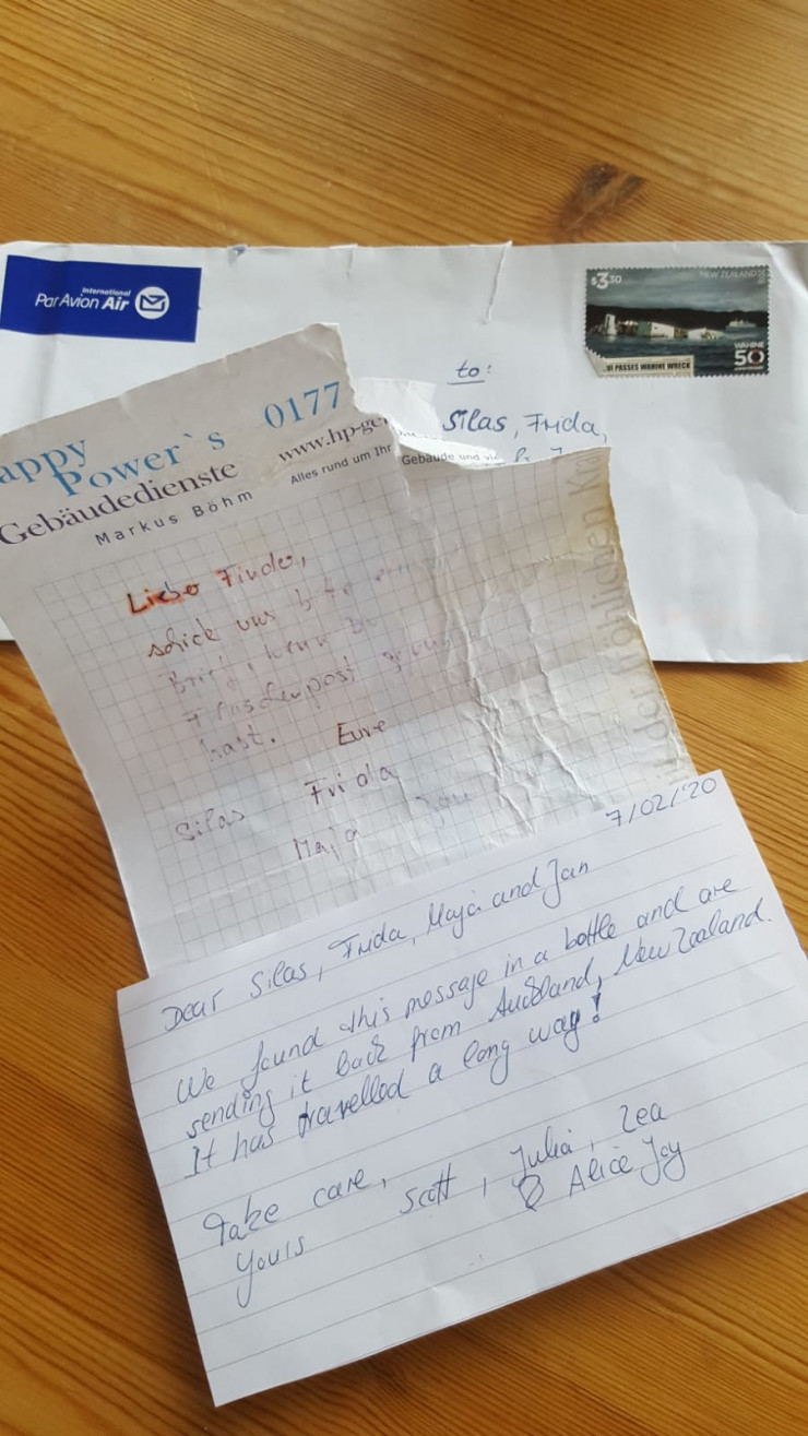 Эту историю Кристиан Гогос рассказал на своей странице в Facebook. По его словам, дети бросили в реку Рейн послание в бутылке в 2013 году. За это время письмо доплыло до Новой Зеландии.