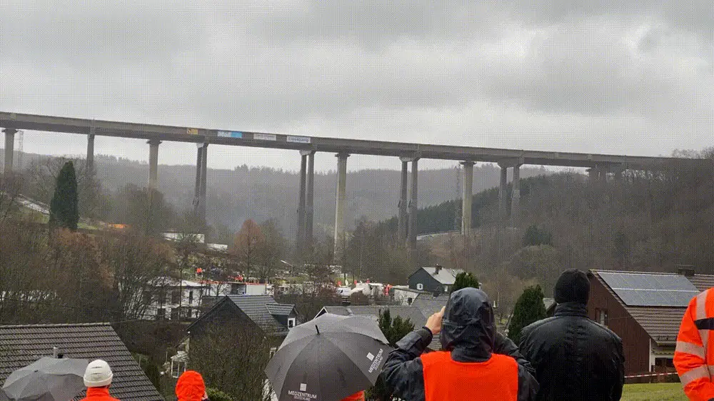 Согласно данным издания, специалисты по сносу использовали около 120 килограммов взрывчатки, чтобы разрушить эстакаду на автобане A45 в немецкой земле Северный Рейн-Вестфалия. Высота моста составляла 70 метров, а пролет - 500 метров. Взрыв установил новый рекорд в Германии, где еще никогда не взрывали мосты такой высоты.