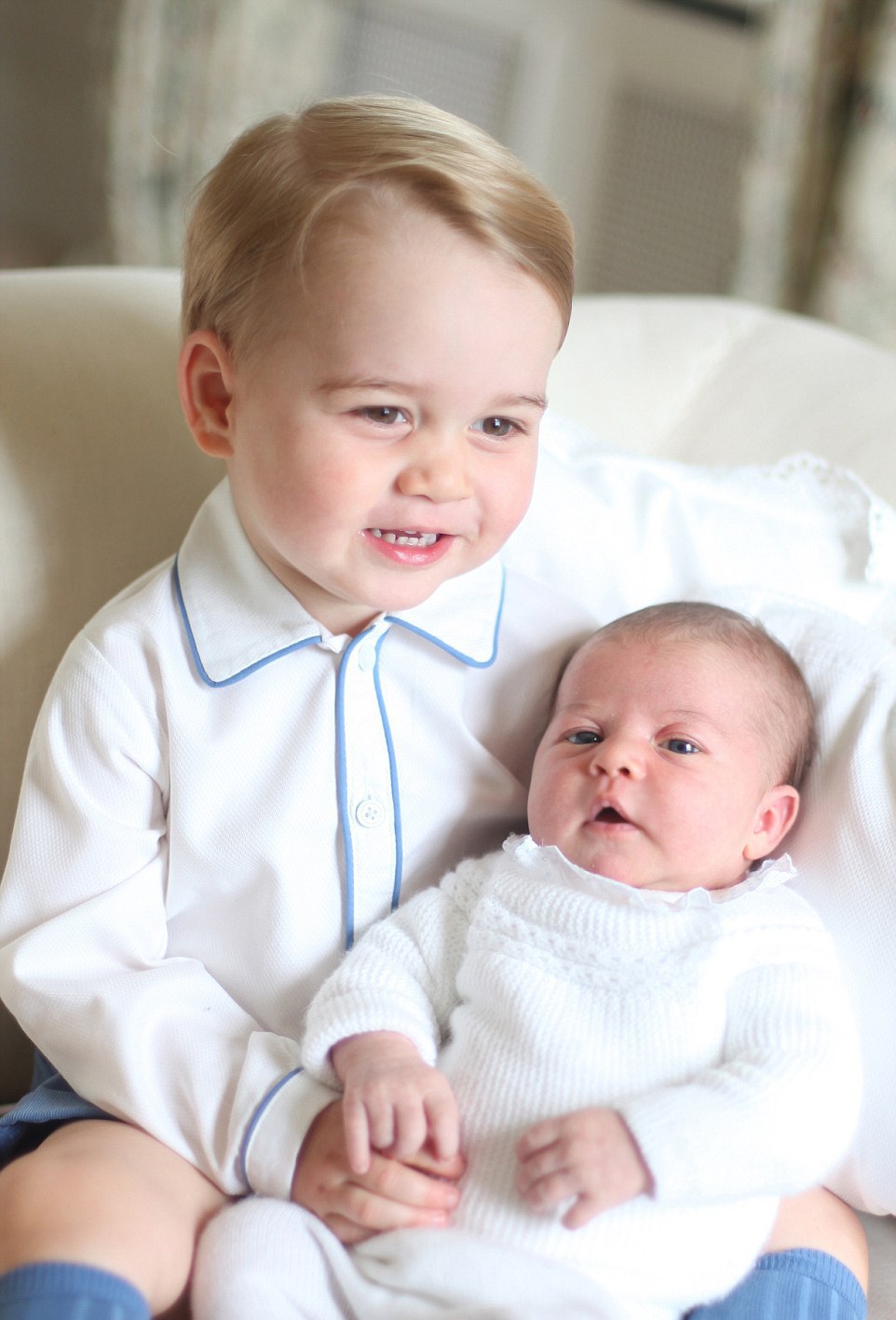 На снимках, сделанных фотоаппаратом Canon EOS 5D Mark II в загородном доме четы в Норфолке, двухнедельная принцесса Шарлотта запечатлена вместе со своим двухлетним братом - принцем Джорджем.