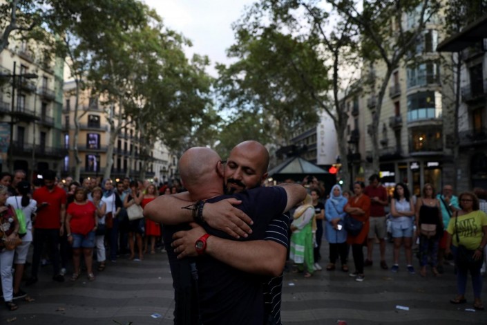 Человек предлагал любому прохожему свои объятия в знак демонстрации единства после теракта в Барселоне. Мусульманина окружила толпа людей. Многие подходили и обнимали мужчину. Судя по видео, опубликованному на странице одной из пользовательниц Facebook, такой поступок вызвал искренние аплодисменты горожан.