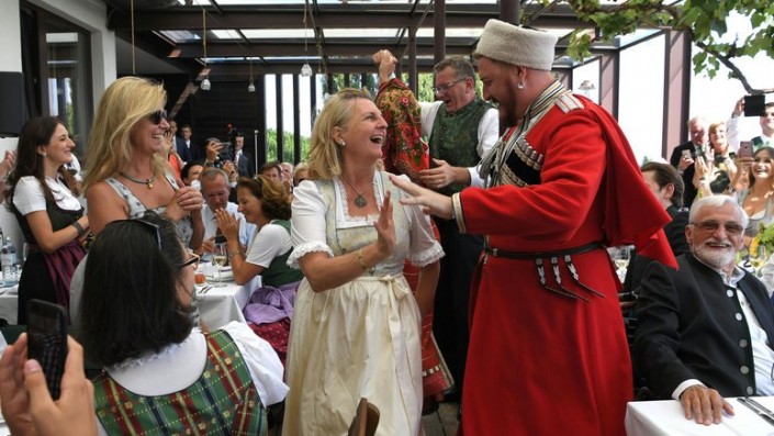 В субботу, 18 августа, Владимир Путин стал гостем на свадьбе министра иностранных дел Австрии Карин Кнайсль и финансиста Вольфганга Майлингера в Южной Штирии. Российский президент вручил невесте букет цветов, потанцевал и произнес тост. Видео поздравления опубликовал телеканал REN-TV.