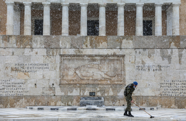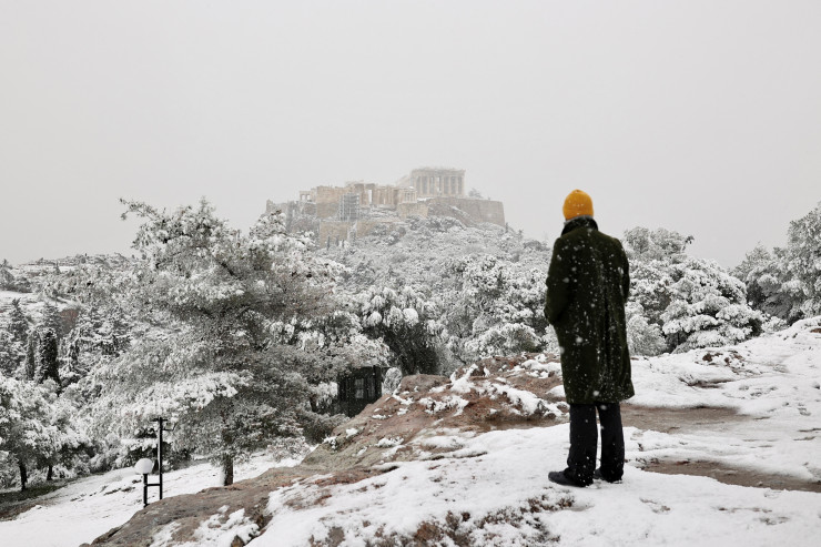 На Грецию обрушился снежный шторм "Эльпис", из-за чего снегом замело почти всю область Аттика, где расположена столица, а также курортные острова Миконос, Санторини, Сирос, Наксос, Тинос, Андрос и другие.
