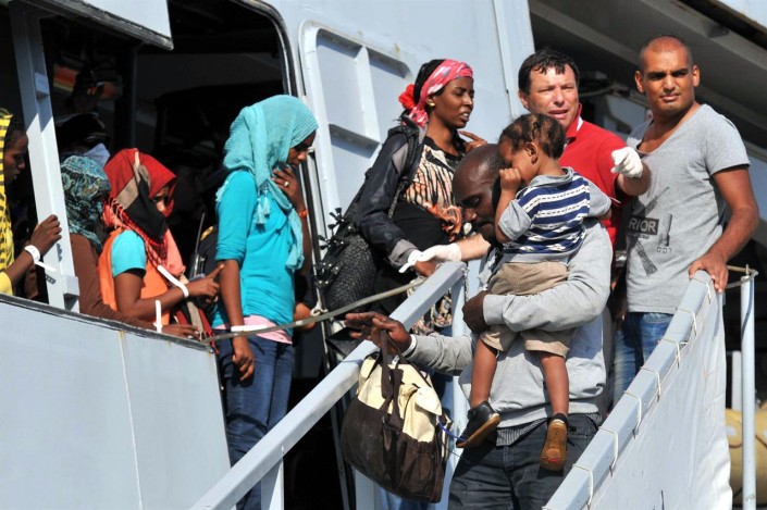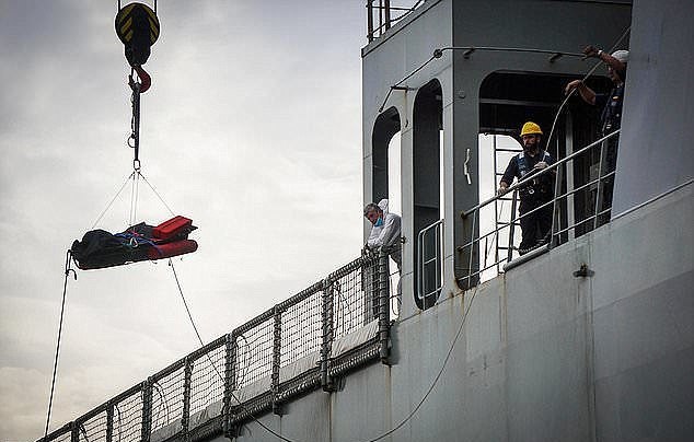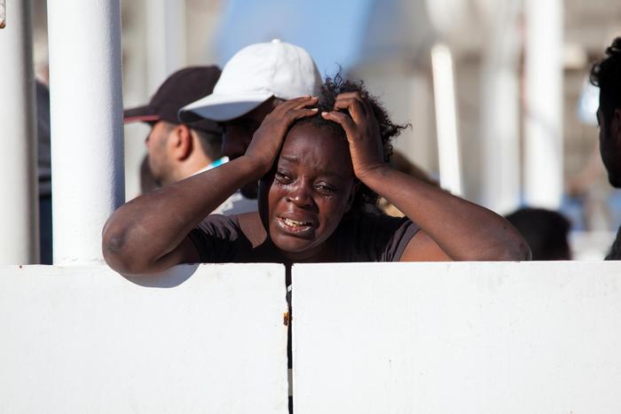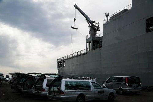 Беженцы пытались перебраться по морю из Ливии в Европу. Выживших доставили в итальянский порт Салерно на юге страны. Тела девушек спустили с корабля с помощью крана и поместили в гробы.