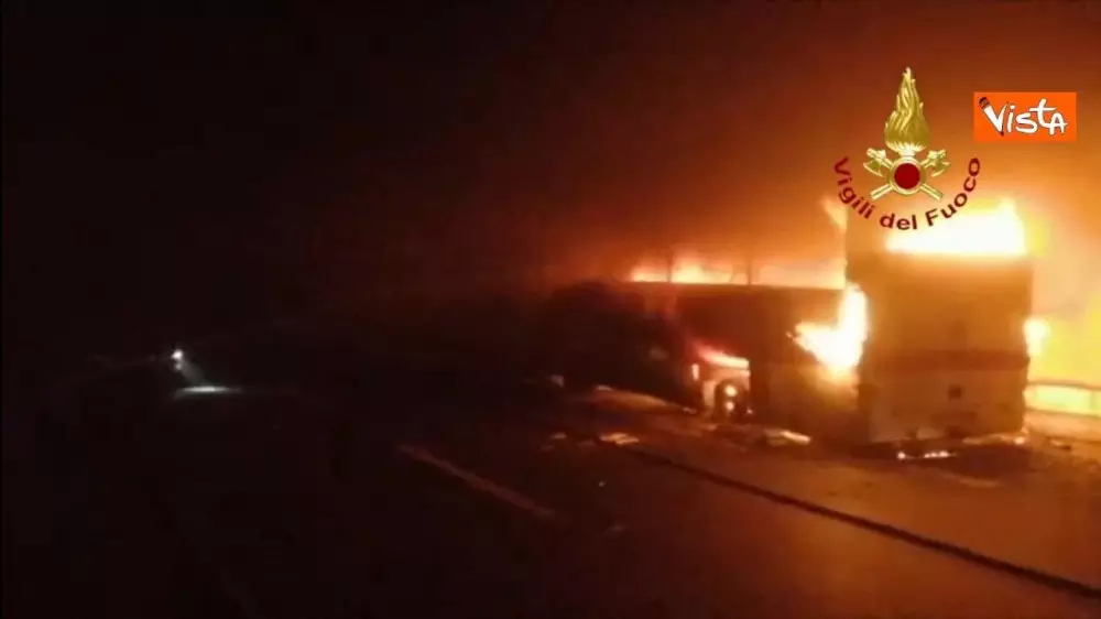 Автобус, который перевозил школьников в возрасте от 14 до 16 лет в летний лагерь, загорелся в туннеле примерно в 80 километрах к северу от Милана.