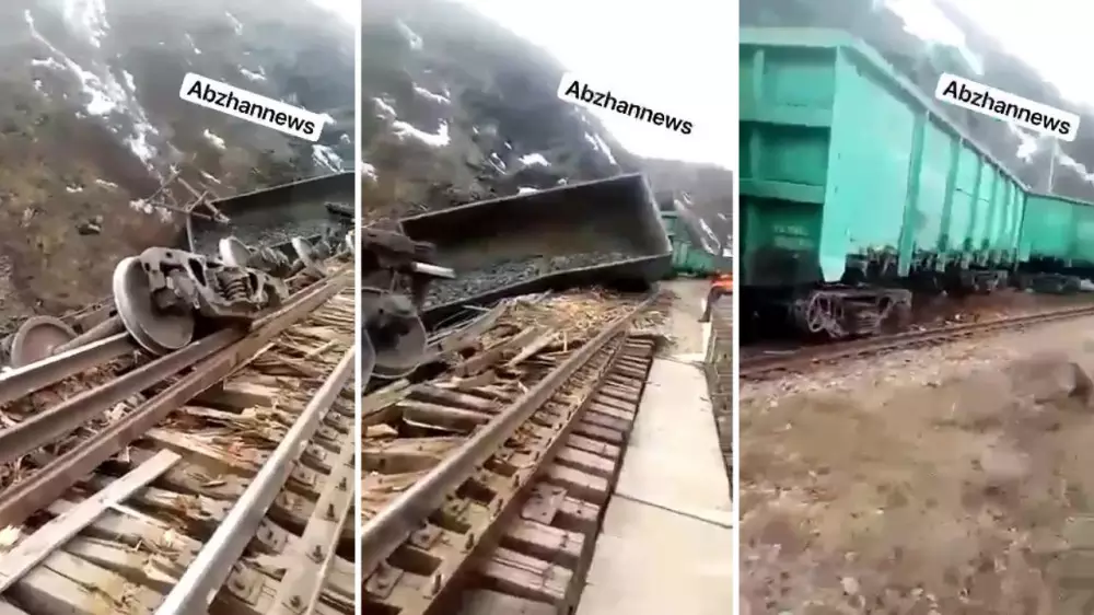 "3 апреля в 12.04 на железнодорожном участке Оскемен – Кумыстау Восточно-Казахстанской области в грузовом поезде произошел сход с рельсов 18 вагонов. Поезд двигался со скоростью 37 километров в час. 5 вагонов оказалось в реке", - сообщили в пресс-службе.