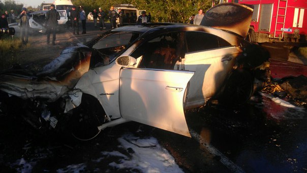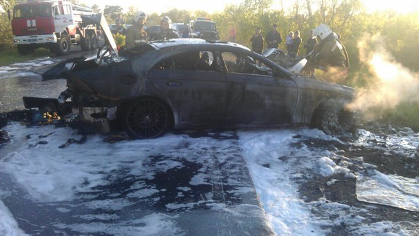 Жуткая авария произошла автодороге в районе одного из городских садоводств, где столкнулись автомобили Mercedes-Benz и Lada. От сильного удара автомобили загорелись. Фото с места происшествия разместила в сети ВКонтакте в группе "Это Павлодар, Детка" пользователь под ником Ильмирочка Буня.