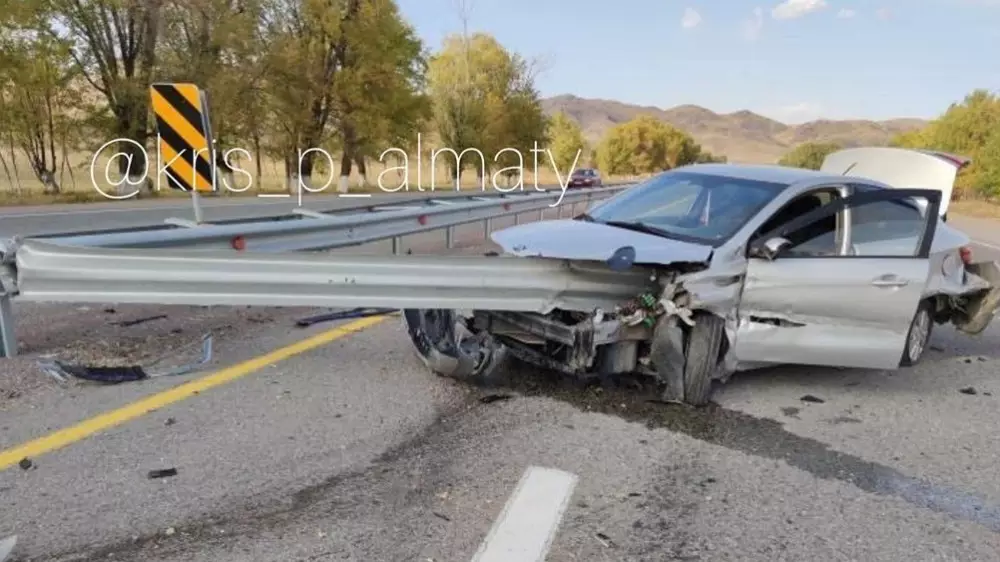 По данным ведомства, авария произошла 4 октября текущего года около 16.00. На 209-м километре автодороги Алматы - Оскемен вблизи села Кызылтоган водитель KIA Rio врезалась в отбойник.