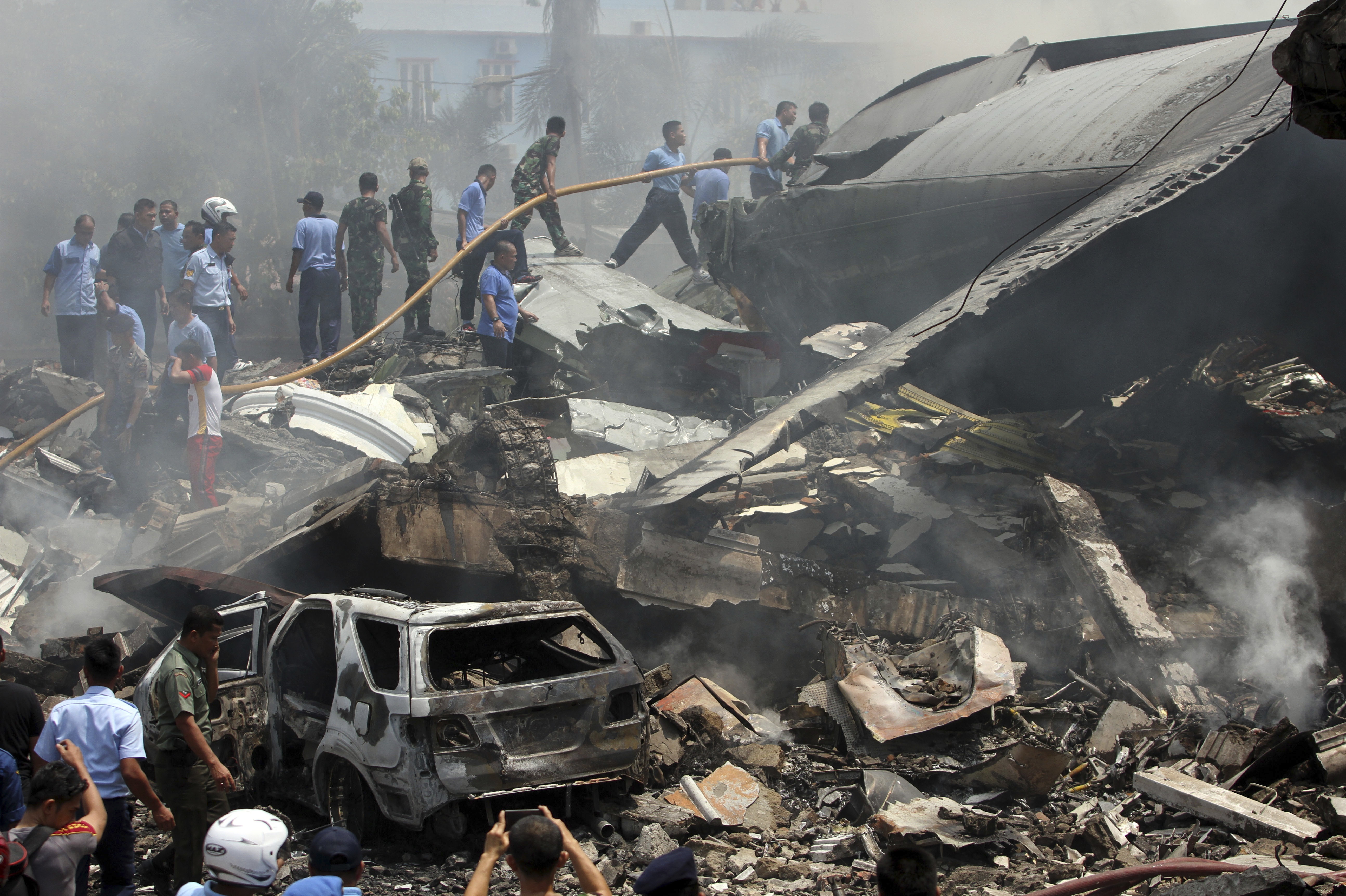 30 человек погибли при падении военного самолета на отель в Индонезии Фото © REUTERS