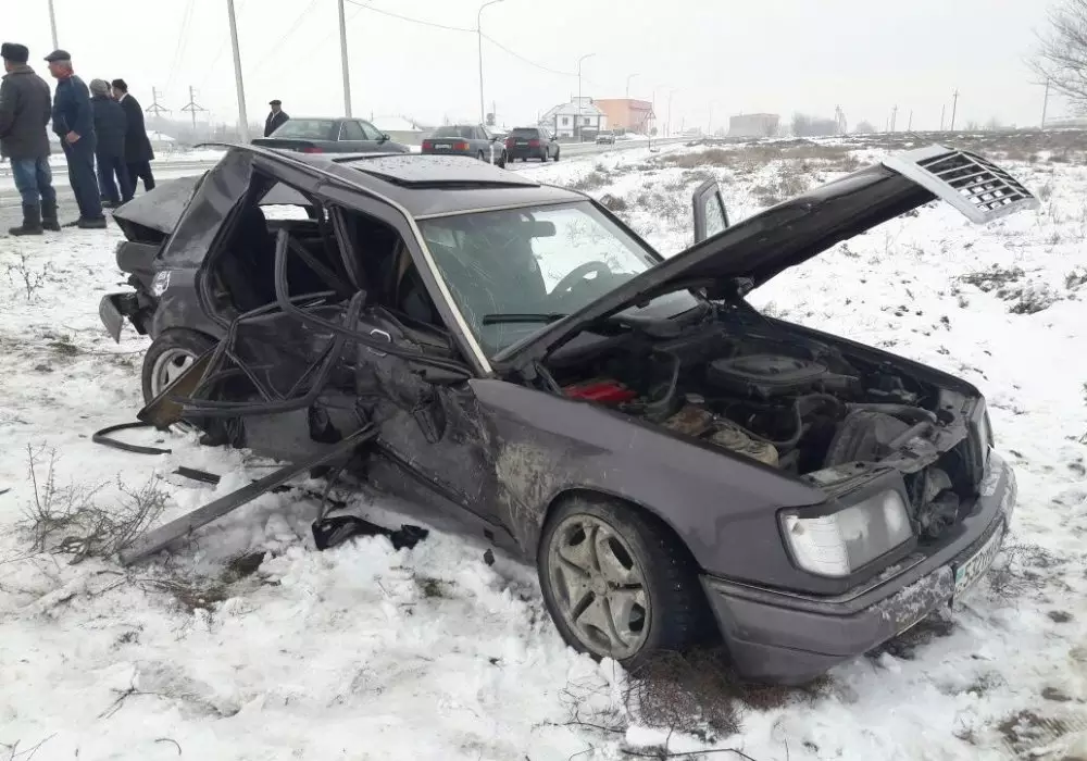 На дороге, ведущей из Шымкента в Ленгер, столкнулись автомобили Mercedes и Volkswagen Passat.