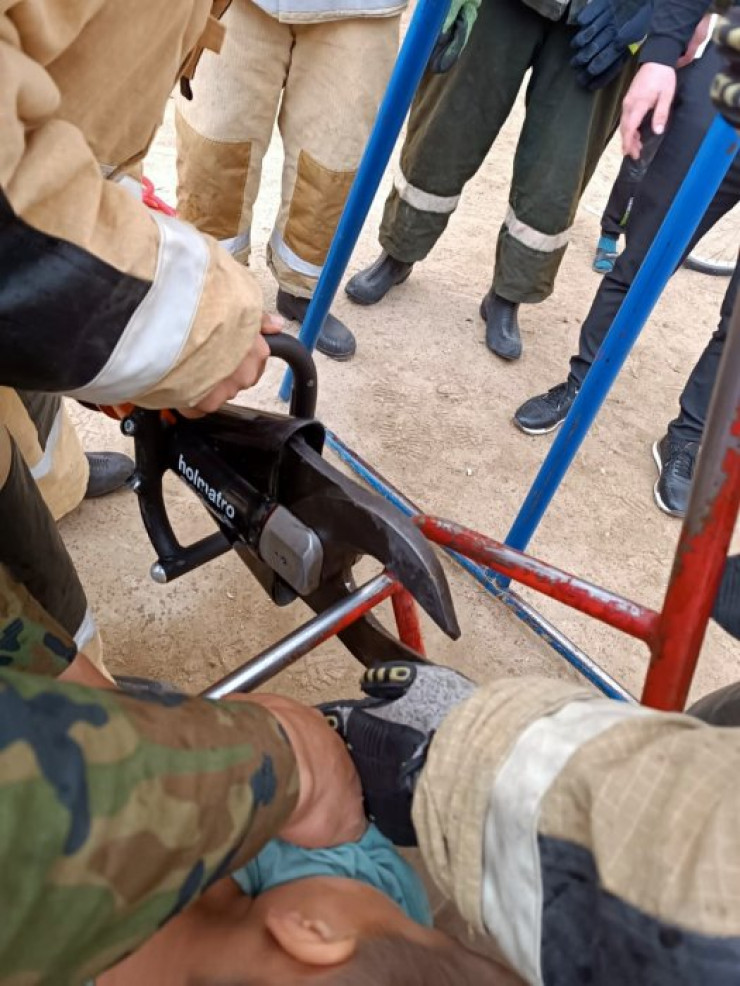 Как рассказали в пресс-центре службы пожаротушения и аварийно-спасательных работ ДЧС Мангистауской области, инцидент произошел 1 мая в сельском округе Атамекен в Мунайлинском районе. Около 19:24 поступил вызов спасателям о том, что на детской игровой площадке на улице Мерей возле дома № 37 пятилетний ребенок застрял в качелях и не может выбраться.