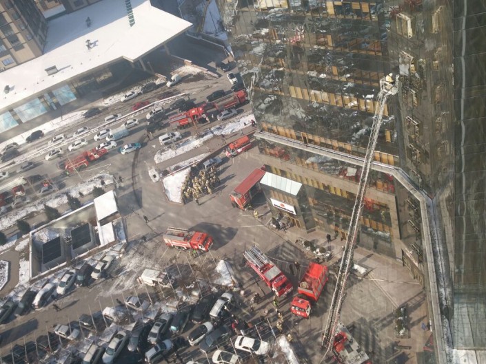 В крупном бизнес-центре Алматы "Нурлы тау" пожарные проводят учения, эвакуированы 500 человек, передает корреспондент Tengrinews.kz.