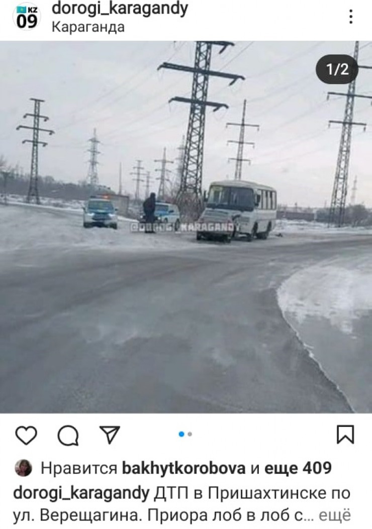 6 человек пострадали при лобовом столкновении автобуса и легковушки в Караганде Фото: instagram.com