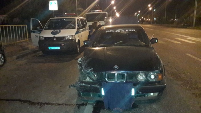 Ночью автомобиль Subaru, в салоне которого, помимо водителя, находились дети, двигался в крайнем правом ряду по улице Момышулы в северном направлении. Параллельно с ним по среднему ряду в том же направлении ехала Toyota Mark II. В районе спортивного комплекса "Алматы Арена" водители остановились на "зебре", пропуская пешехода.