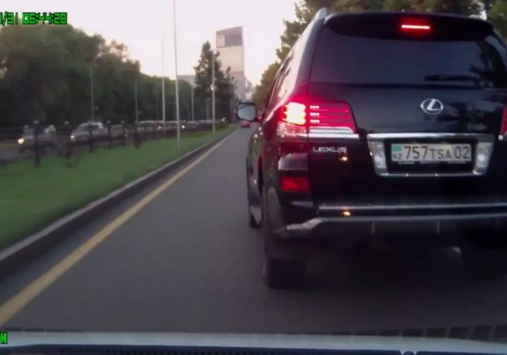Инцидент произошел 20 июля. Опасное поведение водителя внедорожника было зафиксировано на проспекте Аль-Фараби. Очевидец двигался по проспекту с максимальной разрешенной скоростью , чем и помешал водителю Lexus LX570, который, по всей видимости, куда-то сильно спешил. Внедорожник несколько раз "моргнул" фарами, но очевидец не стал уступать дорогу, так как справа была сплошная линия разметки, а после нее автору видео помешал другой автомобиль.