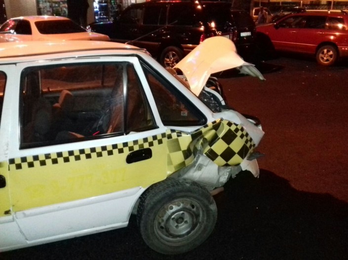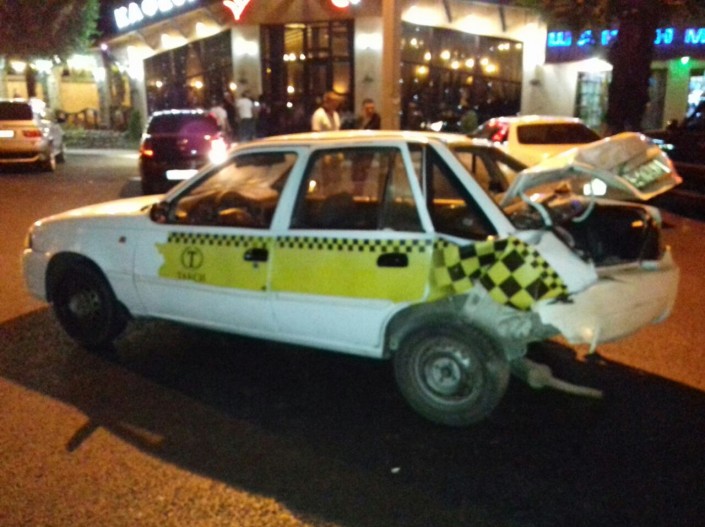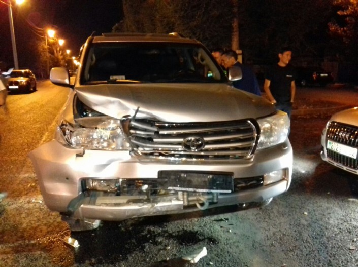 Авария произошла на пересечении улиц Акан Серы и Джапаридзе. Со слов очевидцев, водитель внедорожника двигался по Акан Серы в южном направлении и на полном ходу протаранил Daewoo Nexia. Сразу после этого водитель Toyota Land Cruiser скрылся с места происшествия.