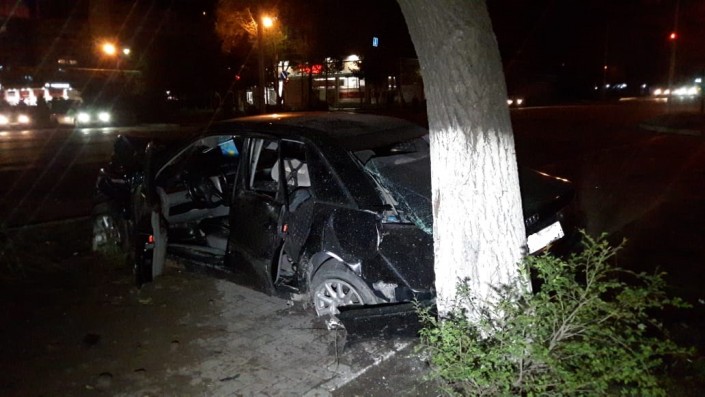 Со слов очевидцев, двигавшаяся в западном направлении по улице Толе би Audi ударила Mercedes, который проезжал на красный свет в северном направлении по улице Яссауи. От удара Mercedes откинуло, а Audi врезалась в дерево. Выяснением всех обстоятельств занимается полиция.