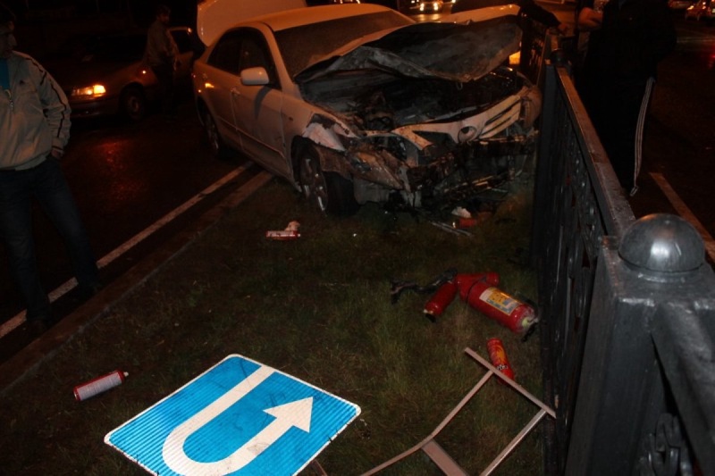 Авария произошла 19 мая около 23.00. Водитель Opel решил совершить поворот в неустановленном месте и резко перестроился в левый ряд. В это время в него врезалась Toyota. В результате удара Opel выбросило на несколько метров вперед и дверью "зажало" водителя. Toyota врезалась в разделительное ограждение и загорелась.