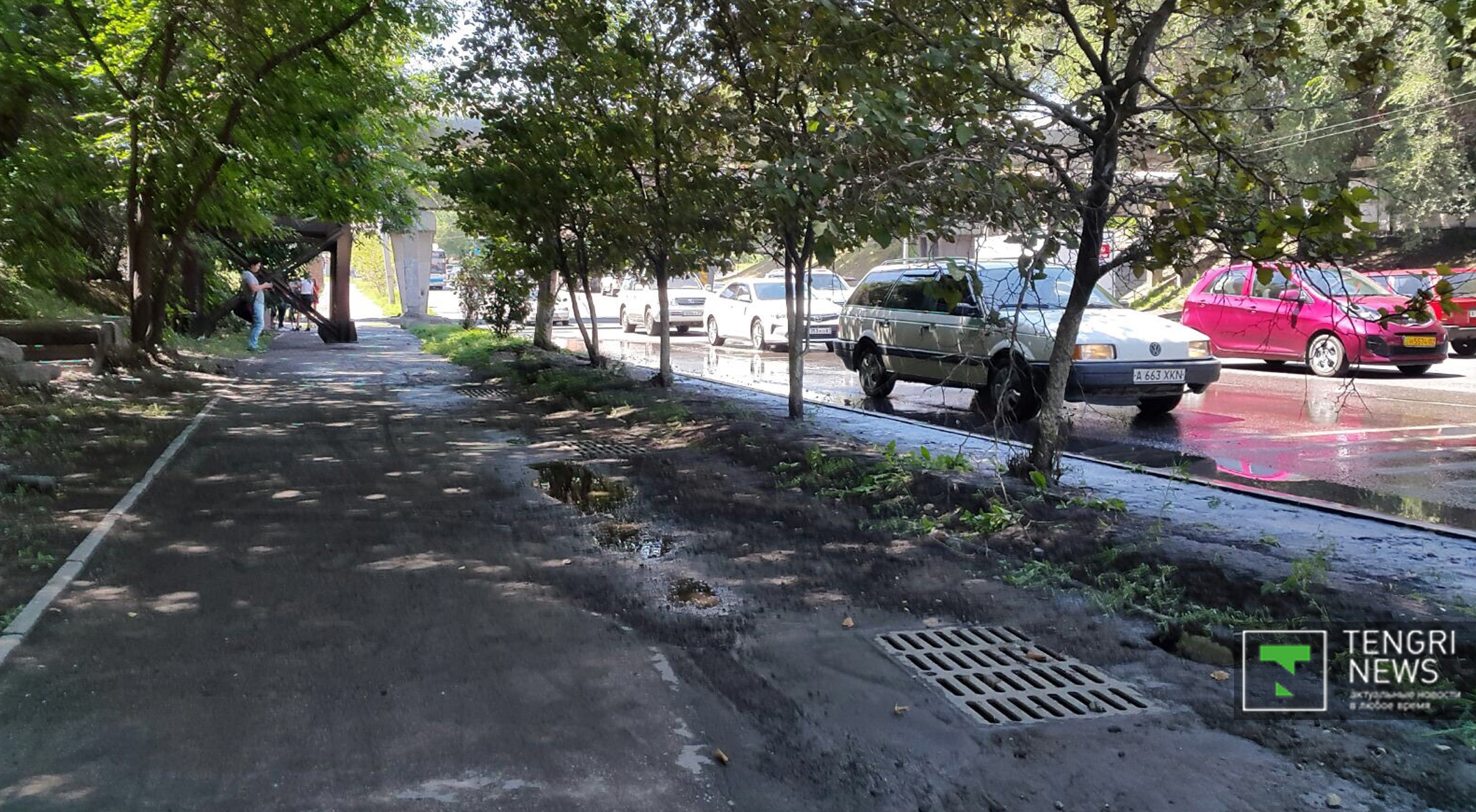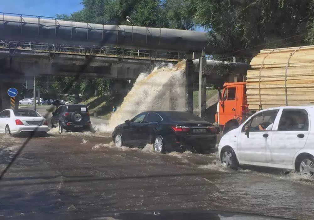 Авария на трубопроводе произошла на проспекте Сейфуллина, неподалеку от пересечения с проспектом Райымбека в Алматы, передает корреспондент Tengrinews.kz. Сообщается, что струя воды хлынула из трубопровода, проходящего над дорогой. По некоторым данным, воду пустили в обрезанную трубу по ошибке. Движение на участке затруднено. Также в результате случившегося был поврежден асфальт на тротуаре. По состоянию на 11.50 водоснабжение на данном участке было перекрыто, ведутся работы по устранению последствий аварии.