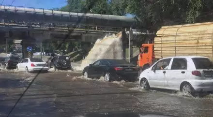 Авария на трубопроводе произошла на проспекте Сейфуллина, неподалеку от пересечения с проспектом Райымбека в Алматы, передает корреспондент Tengrinews.kz. Сообщается, что струя воды хлынула из трубопровода, проходящего над дорогой. По некоторым данным, воду пустили в обрезанную трубу по ошибке. Движение на участке затруднено. Также в результате случившегося был поврежден асфальт на тротуаре. По состоянию на 11.50 водоснабжение на данном участке было перекрыто, ведутся работы по устранению последствий аварии.