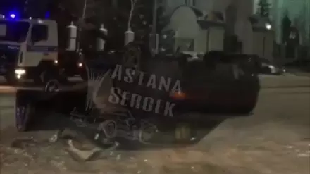 Автомобиль перевернулся после ДТП в Нур-Султане, передает Tengrinews.kz. Видео инцидента распространилось в социальных сетях.