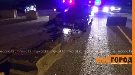 Как сообщается, ДТП произошло 30 марта в 21.30 по улице Жангир Хана, недалеко от светофора в сторону Свистун-горы. От сильного удара один из бетонных блоков сдвинулся с места на 4 метра.