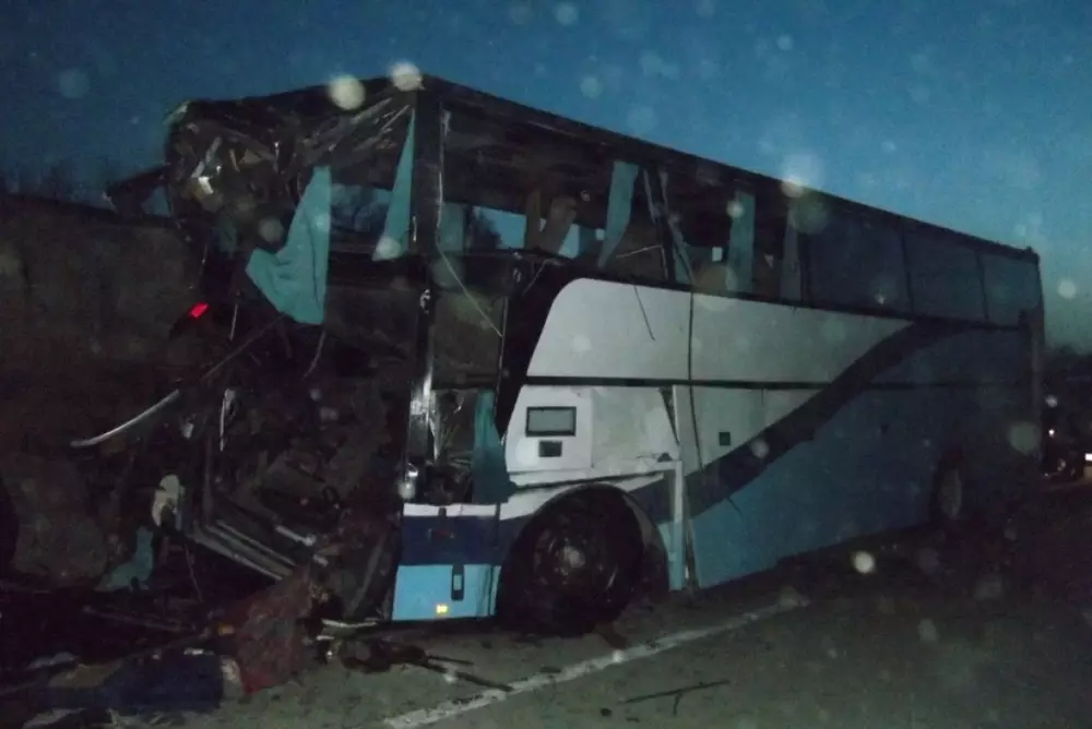 Авария произошла в ночь на 20 марта на 427-м километре трассы Алматы - Ташкент. Водитель автобуса MAN, следуя из Алматы в Шымкент, не справился с управлением и столкнулся со стоящим на обочине КамАЗом, груженым рельсами. В автобусе находились 46 пассажиров и два водителя. По факту ДТП проводится расследование. Сведения о погибших и пострадавших устанавливаются.