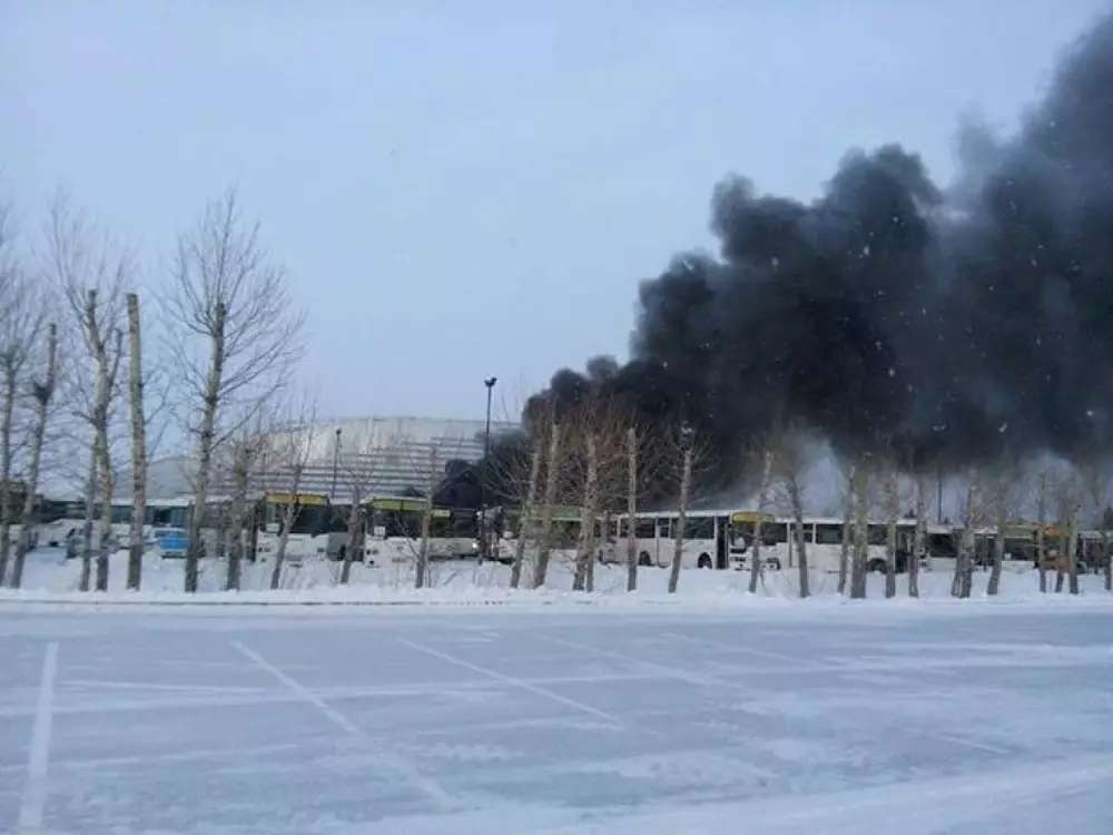 Автобус горел возле велотрека "Сарыарка" в Астане