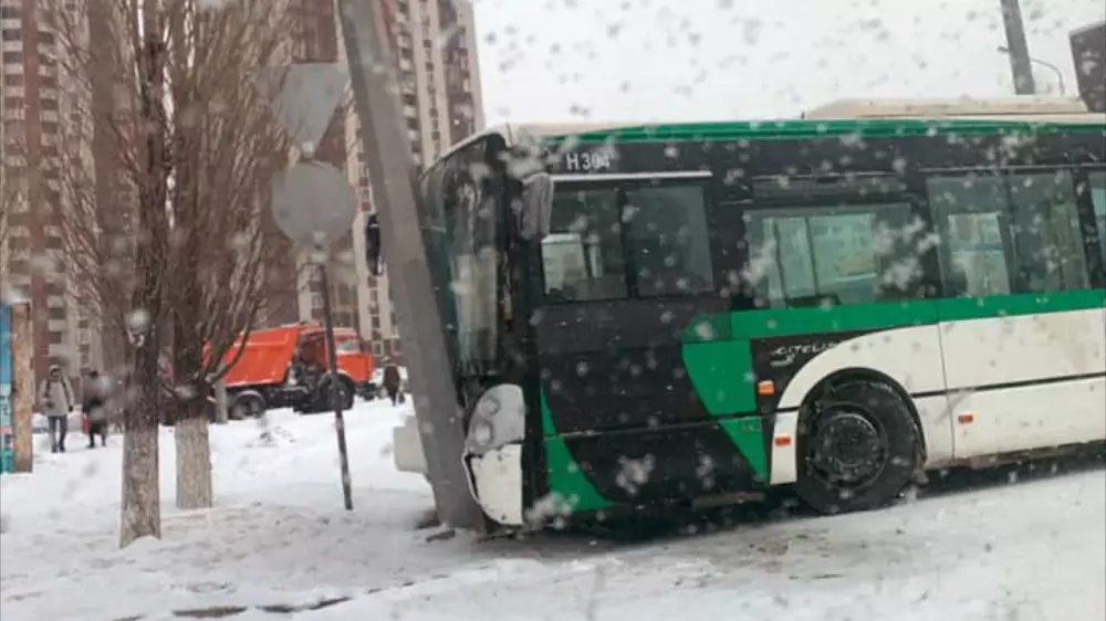 "29 декабря текущего года в 11.38 47-летняя женщина, управляя автомашиной Volkswagen Polo, следуя по проспекту Тауелсиздик, при перестроении не убедилась в безопасности маневра и допустила столкновение с маршрутным автобусом. В результате ДТП автобус допустил наезд на опору освещения. В больницу были доставлены пятеро пассажиров маршрутного автобуса и водитель автомашины Volkswagen Polo, которые после осмотра врача отпущены домой. По данному факту проводится дознание", - сообщили в пресс-службе Департамента полиции Нур-Султана.