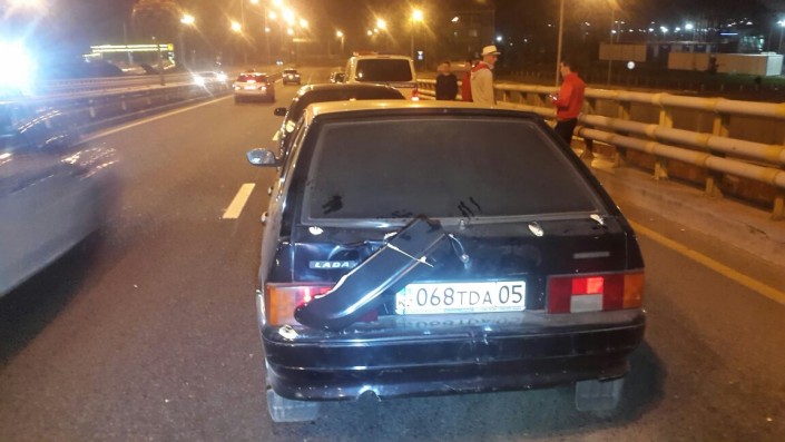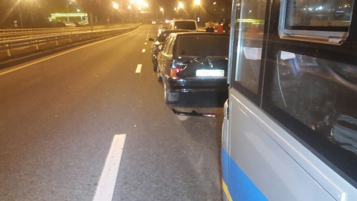 Инцидент произошел на Восточной объездной дороге на углу улицы Халиуллина. Автобус маршрута № 38 въехал в заднюю часть автомашины ВАЗ (Lada) 2114, которая, в свою очередь, протаранила Nissan Maxima.