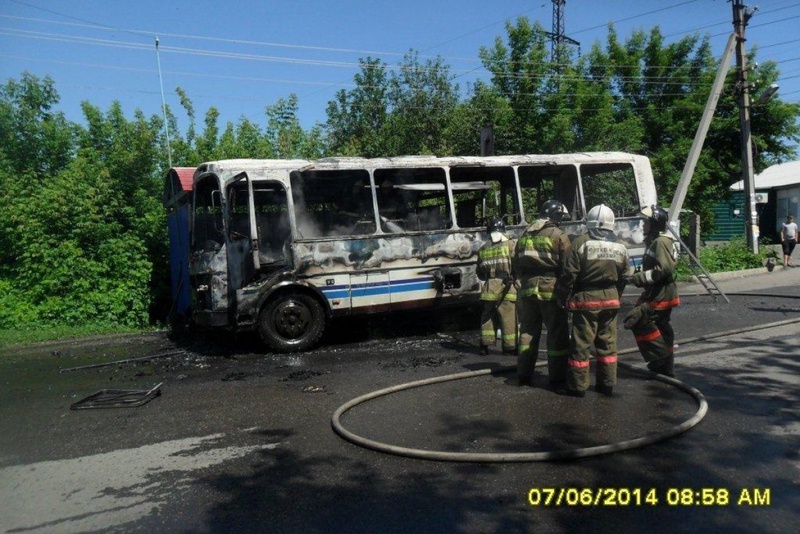 Пожар произошел на одной из остановок города. Автобус сгорел за считанные минуты. Пассажиров в салоне ПАЗа не было. Во время тушения водитель автобуса получил ожог левой кисти. Пострадавший рассказал, что он отошел, чтобы отметиться в журнале, а вернувшись, увидел сильное задымление, перешедшее в открытое пламя. "До приезда пожарных водитель пытался потушить огонь подручными средствами, забыв о том, что в салоне находилось два огнетушителя", - отметили в пресс-службе.