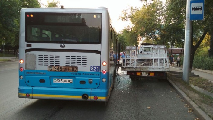 Автобус столкнулся с эвакуатором в Алматы, передает корреспондент программы "Территория происшествий" на канале СТВ.