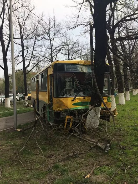 Автобус врезался в дерево из-за отказа тормозов в Алматы