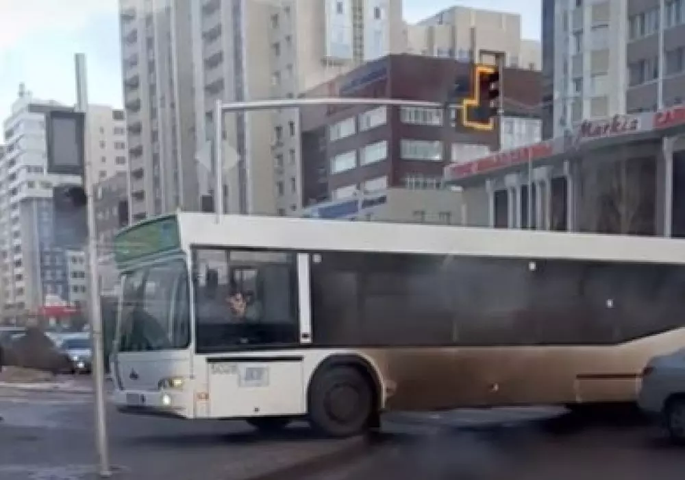 Автобус выехал на тротуар из-за неработающего светофора в Астане Кадр с видео