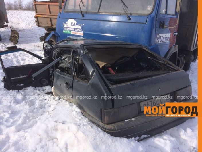 Сообщается, что ДТП произошло 22 февраля в 14.00 на трассе Уральск - Каменка недалеко от поселка Белес. КамАЗ направлялся в сторону Уральска, а ВАЗ-2114 - в противоположную сторону.