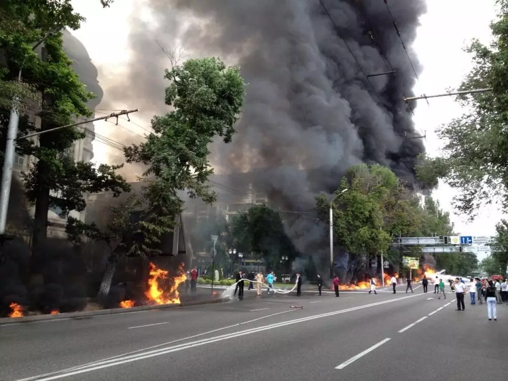 Tengrinews.kz, возгорание произошло возле спортивного магазина RealSport, огнем охвачены несколько этажей здания, по адресу: Кабанбай батыра, 138. Из окон дома валит дым, спасатели и пожарные эвакуируют жильцов. Жителей верхних этажей спускают вниз по пожарному крану. На месте работают более десяти расчетов службы пожаротушения, спецтехника продолжает прибывать на место происшествия.