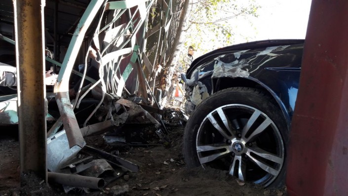 BMW врезалась в забор стоянки в Алматы, в результате пострадали три автомобиля, передает корреспондент программы "Территория происшествий" на телеканале СТВ.
